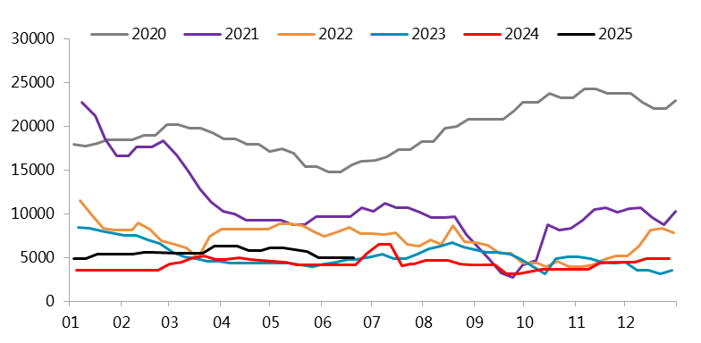 从新能源产业链条来看,2025年1-5月,终端新能源汽车产量维持45%的高速增长;三元动力电池装车量占比仅仅18.6%,所以三元动力电池装车量维持负增长达-12.4%;三元正极材料产量增速从一季度的负值转为正增长,新能源对硫酸镍需求仍维持负增长。总体看,新能源产业链条表现一般。