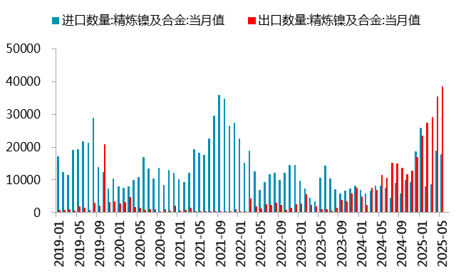 总体看,今年1-5月精炼镍仍然维持净出口状态,1-5月累计净出口933.41吨,去年前5个月累计净进口2395.45吨。