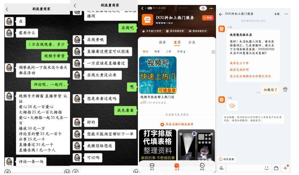 记者在淘宝平台随机与刷评价账号取得微信联系。