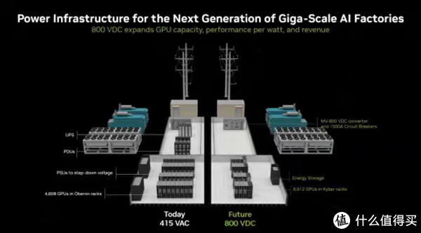 高压化趋势不仅体现在汽车领域。在2025年的GTC大会上,英伟达宣布将从2027年开始全面转向800V高压直流供电架构,单个机架可部署高达576颗Rubin Ultra GPU。随着AI数据中心功耗激增,供电系统面临巨大挑战。例如,传统54V直流系统在1MW负载下需使用200公斤铜材,一个规模达1GW的数据中心对铜的需求量甚至可能高达50万吨。这一数字反映出高压化不仅是技术趋势,更是降本增效的必然选择。