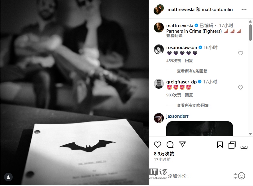 IT之家 6 月 28 日消息,经历数次延期后,备受期待的 DC 电影《新蝙蝠侠》续集迎来最新进展。电影导演马特・里夫斯(Matt Reeves)宣布其剧本已完成3G配资,由他与编剧 Mattson Tomlin 共同完成。