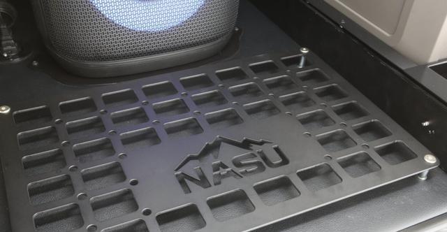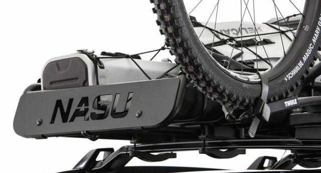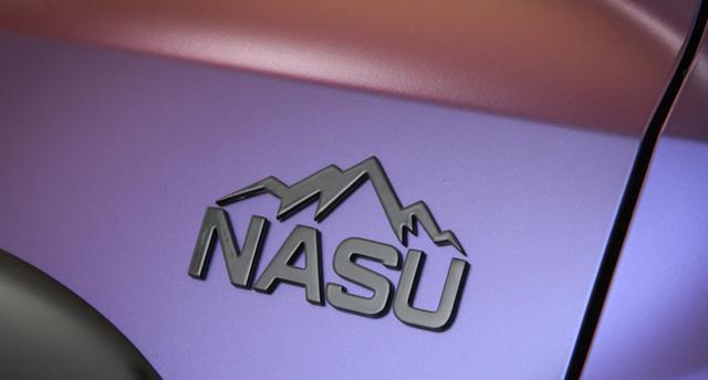 车身侧面,黑色轮眉采用宽体设计,包裹着定制哑光黑轮毂,搭配 Toyo Open Country A/T III 全地形轮胎,胎纹深度达 18mm,可轻松应对泥泞、碎石等复杂路面。定制的悬架升降装置为核心改装部件,通过液压调节机构可实现离地间隙 10-50mm 范围内的无级升降,兼顾城市通勤的低重心与户外穿越的高通过性。车顶加装高强度行李架,支持搭载自行车、露营装备等,车身多处镶嵌的 “Nasu” 专属标识,强化了车型的独特身份。尾部延续家族式设计,但后包围换装金属防滑护板,配合隐藏式排气布局,既保护车身底部免受剐蹭,又维持了视觉上的简洁协调。