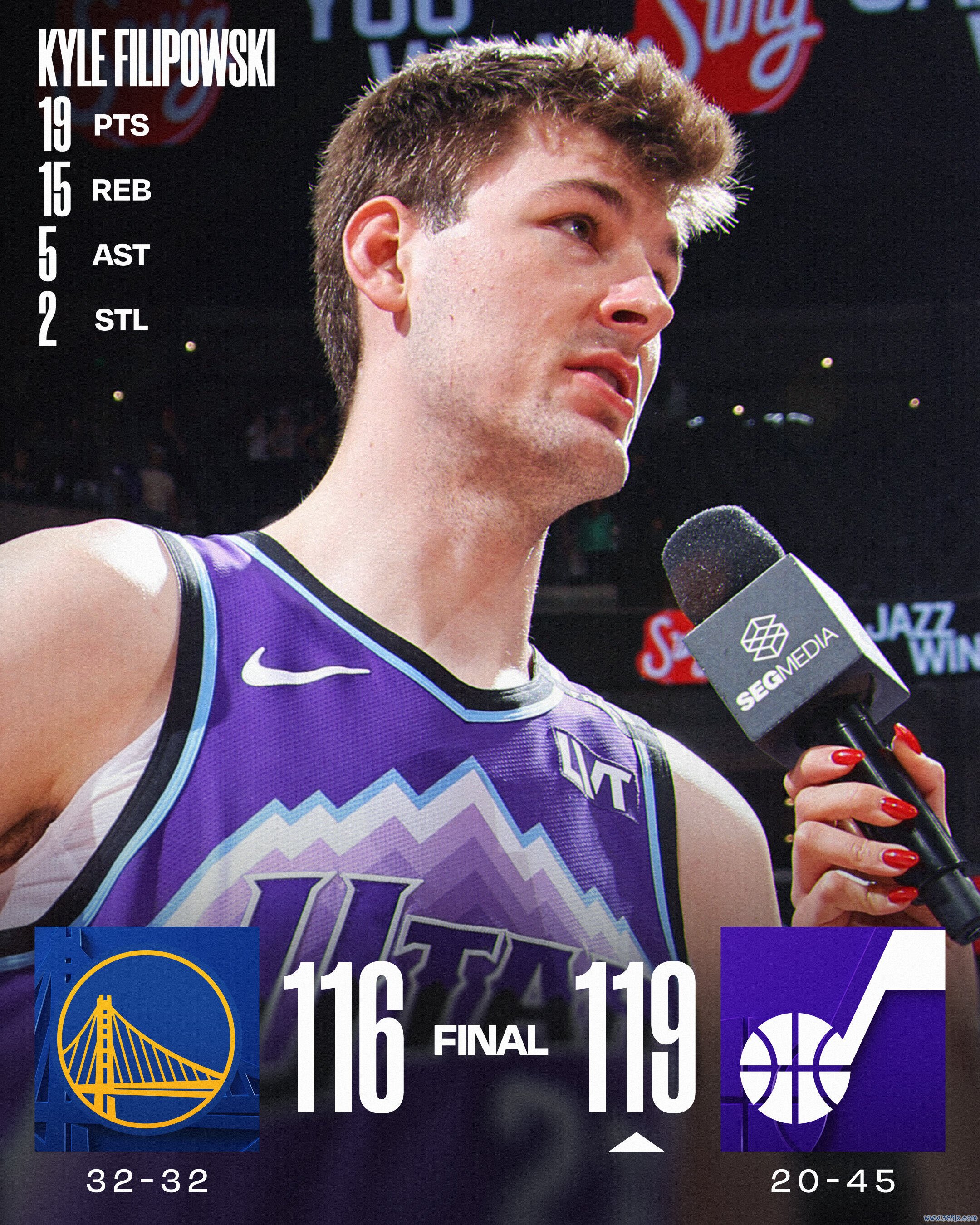 3月10日,NBA常规赛再战一场,欣森终场前29.2秒射落关键三分,爵士主场119-116险胜勇士避免连败。此役森萨鲍21分3助攻,菲利波夫斯基19分15篮板5助攻2抢断,乔治15分,科迪-威廉姆斯12分7助攻,乐福12分8篮板;勇士队两连败,梅尔顿22分7篮板,波齐姆斯基14分8篮板4助攻,桑托斯15分8篮板5助攻,小库里复出得到13分。